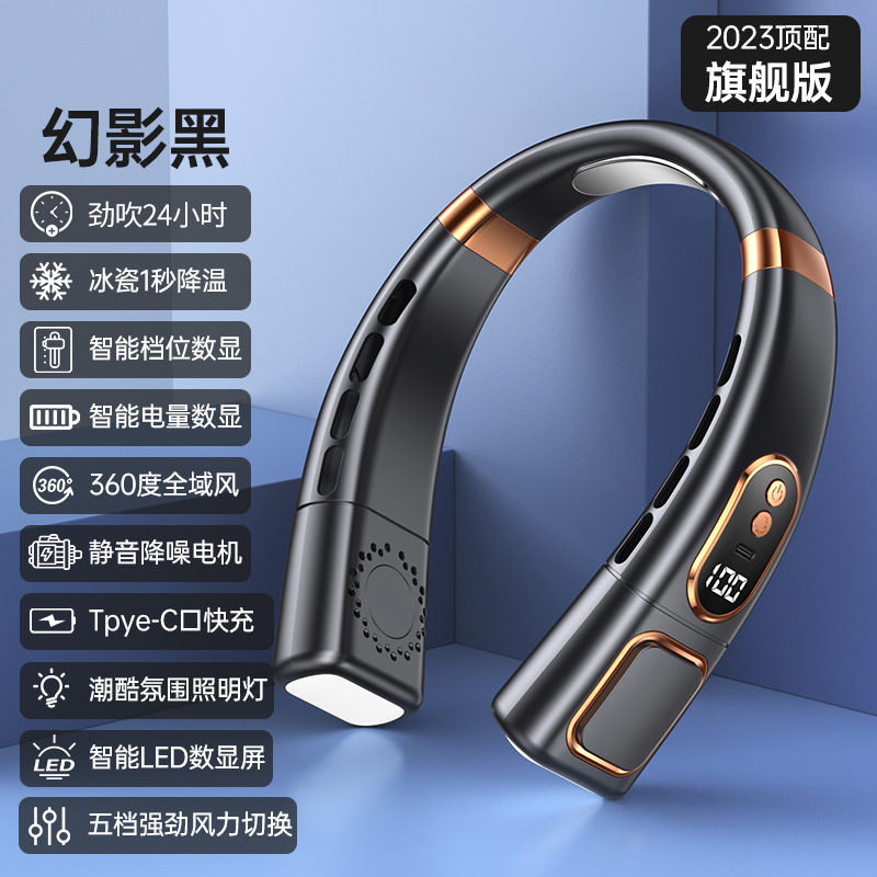 新款冰瓷掛脖風扇隨身15℃小空調 冰瓷急速降溫潮酷六色照明燈 夏日最潮~